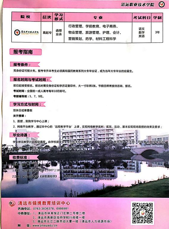 共青團(tuán)清遠(yuǎn)市委員會(huì)2017年圓夢(mèng)計(jì)劃正式啟動(dòng)!【北京大學(xué)圓夢(mèng)計(jì)劃,圓你大學(xué)夢(mèng)】成人本科:北京大學(xué)(網(wǎng)絡(luò)教育)符合條件者3年共交學(xué)費(fèi)2000元,?疲呵暹h(yuǎn)職業(yè)技術(shù)學(xué)院(成人函授),符合條件者3年共交學(xué)費(fèi)1000元,就能完成學(xué)業(yè),輕松拿證!另外,企業(yè)人力資源管理師職業(yè)資格考證、叉車上崗證考證等現(xiàn)火熱接受報(bào)名中,歡迎有志提升自己的朋友咨詢報(bào)名。咨詢熱線:成老師0763-3630112  15816286696微信同步 報(bào)名地址:清遠(yuǎn)市北江二路勞動(dòng)大廈一樓