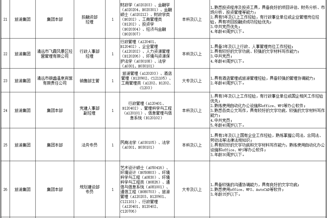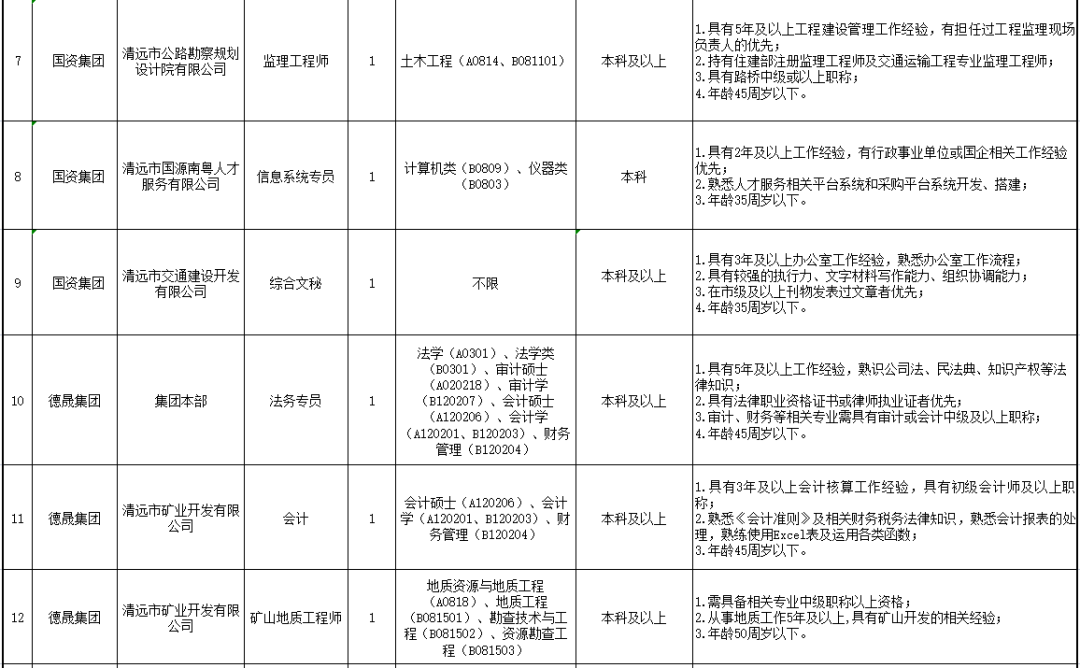 詳見(jiàn)清遠(yuǎn)市市屬?lài)?guó)有企業(yè)2022年公開(kāi)招聘工作人員崗位表。