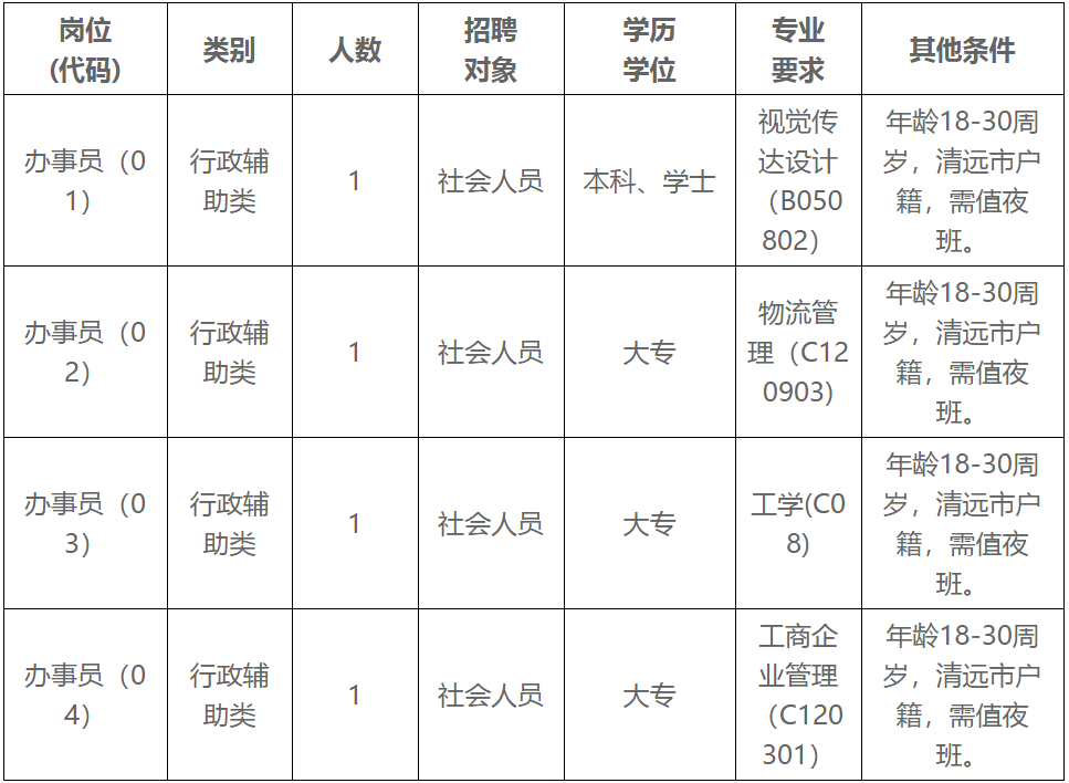 根據(jù)工作需要,清遠市清城區(qū)源潭鎮(zhèn)人民政府面向社會公開招聘專項工作聘員4名,F(xiàn)將有關事項公告如下: