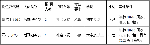 清遠(yuǎn)市清城區(qū)機(jī)關(guān)事務(wù)管理局因工作需要,根據(jù)《關(guān)于印發(fā)<清遠(yuǎn)市清城區(qū)機(jī)關(guān)事業(yè)單位專項(xiàng)工作聘員、合同制聘員以及后勤服務(wù)類人員管理辦法>的通知》(城區(qū)人社〔2022〕20號)文件精神,面向社會公開招聘后勤服務(wù)類人員3名,現(xiàn)將有關(guān)事宜公告如下:
