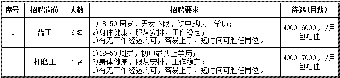 嶄新的標準工業(yè)廠房,工作環(huán)境舒適,新裝修的宿舍,設(shè)施齊全,居住環(huán)境溫馨。享受國家法定有薪假期、生日福利、節(jié)日福利、年終福利、公司年會、旅游等。本公司訂單充足穩(wěn)定,長白班,待遇好,包吃住,準時發(fā)放工資。所招崗位的工作內(nèi)容均有人教,晉升和加薪空間大。歡迎來公司面試或電話詳細了解!