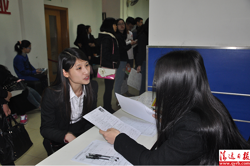 求職人員大多是應屆畢業(yè)生以及即將畢業(yè)在讀生,如清遠職業(yè)技術(shù)學院等職校則專門組織學生來求職。在讀大二的清職院學生小陳希望找到實習工作,她應聘的是某公司董事長助理,經(jīng)過一輪面試后,招聘人員告訴她目前暫不適合溝通傳達類工作,建議應聘行政文員類,最終她聽取了建議。