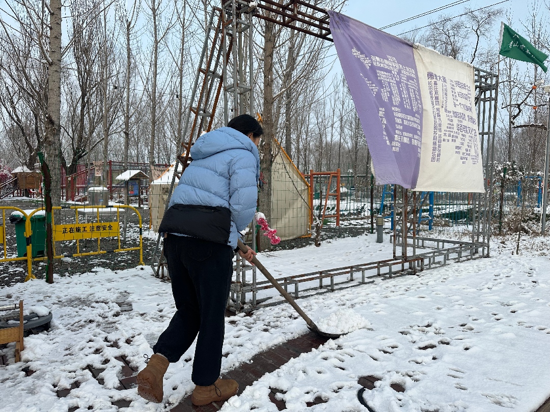華百?gòu)V場(chǎng)及長(zhǎng)田物業(yè)華百項(xiàng)目部也迅速進(jìn)入掃雪行動(dòng),大家手持鐵鍬、掃帚、除雪鏟等工具,分工明確、協(xié)作有序,重點(diǎn)對(duì)廣場(chǎng)入口、停車(chē)場(chǎng)出入口、主干道等關(guān)鍵區(qū)域的積雪進(jìn)行清掃。盡管天氣寒冷,雪花仍在飄落,但員工們熱情高漲,揮舞著工具的身影在雪景中構(gòu)成了一道亮麗的風(fēng)景線。經(jīng)過(guò)清掃,華百?gòu)V場(chǎng)內(nèi)外積雪被徹底清除干凈,清潔的環(huán)境、暢通的道路,讓每一位踏入廣場(chǎng)的市民都能安心享受舒適、安全的周末時(shí)光,也在寒冬中傳遞出一份溫暖、貼心的服務(wù)誠(chéng)意。